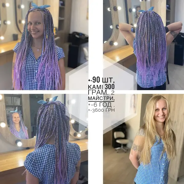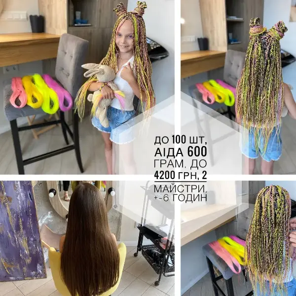 Ви можете заздалегідь обрати канекалон за якістю та кількістю: асортимент варіюється від класичного “Джамбо” (Китай) до BnG (Америка). Вартість — від 100 до 350 грн за пачку.